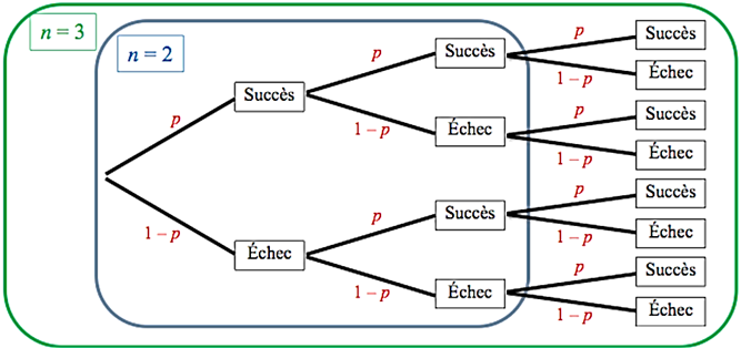 Chaque niveau de l'arbre représente une épreuve de Bernoulli.