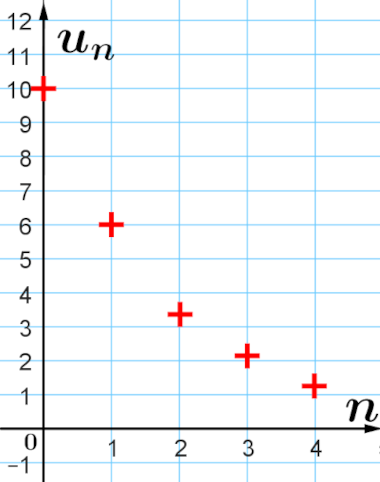 $(u_n)$ est la suite définie par $u_0=10$ et pour tout entier naturel $n$, $u_{n+1}=0,5u_n+3$.